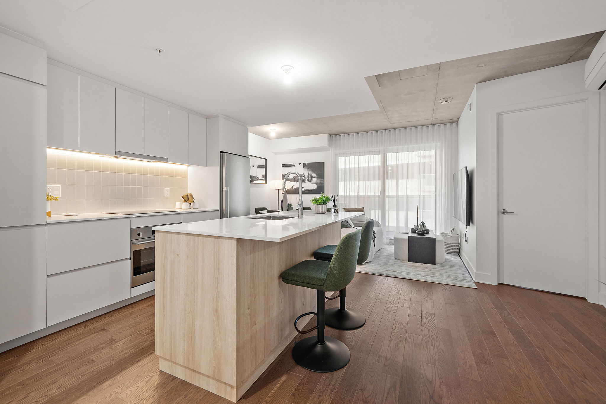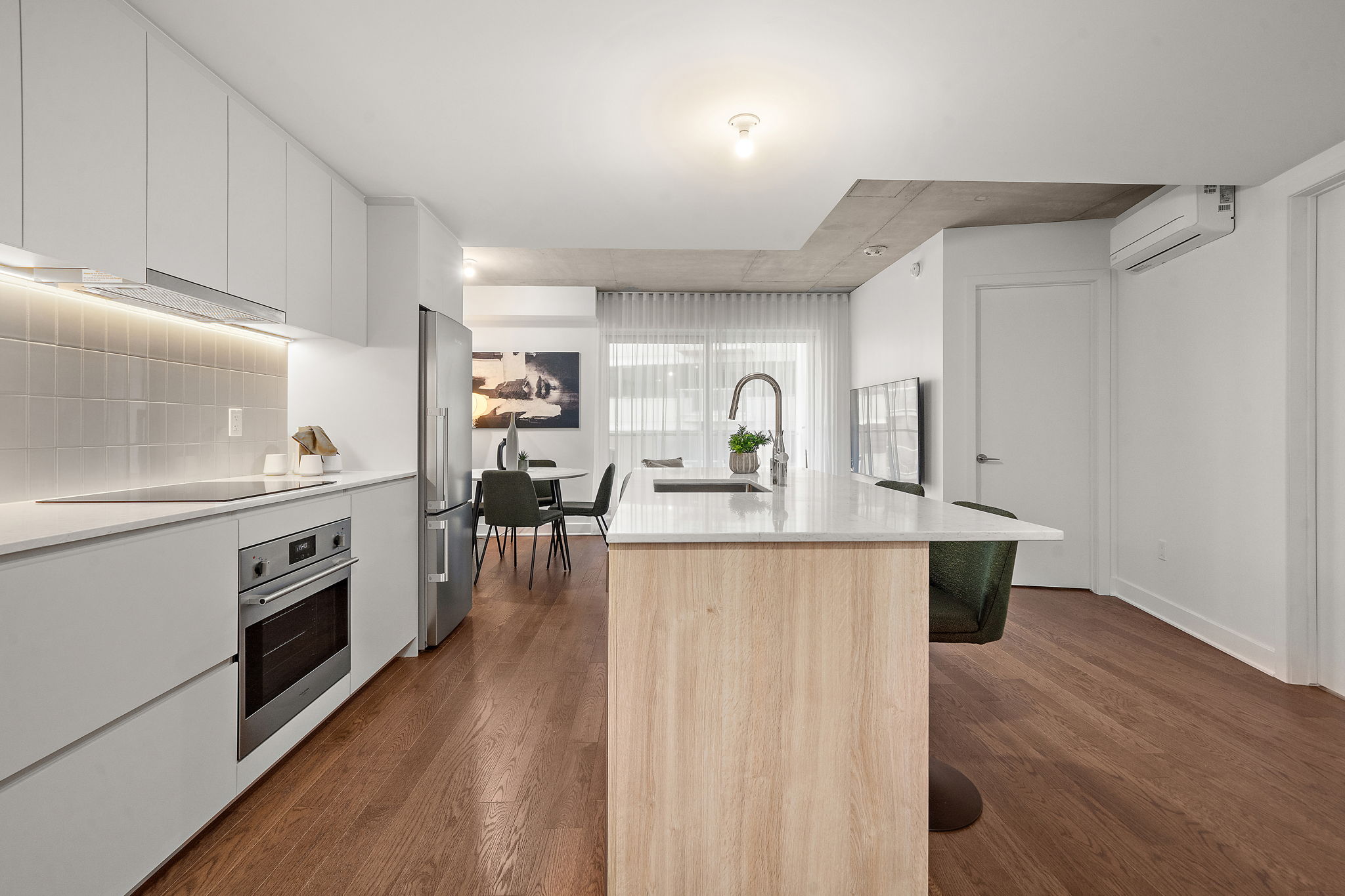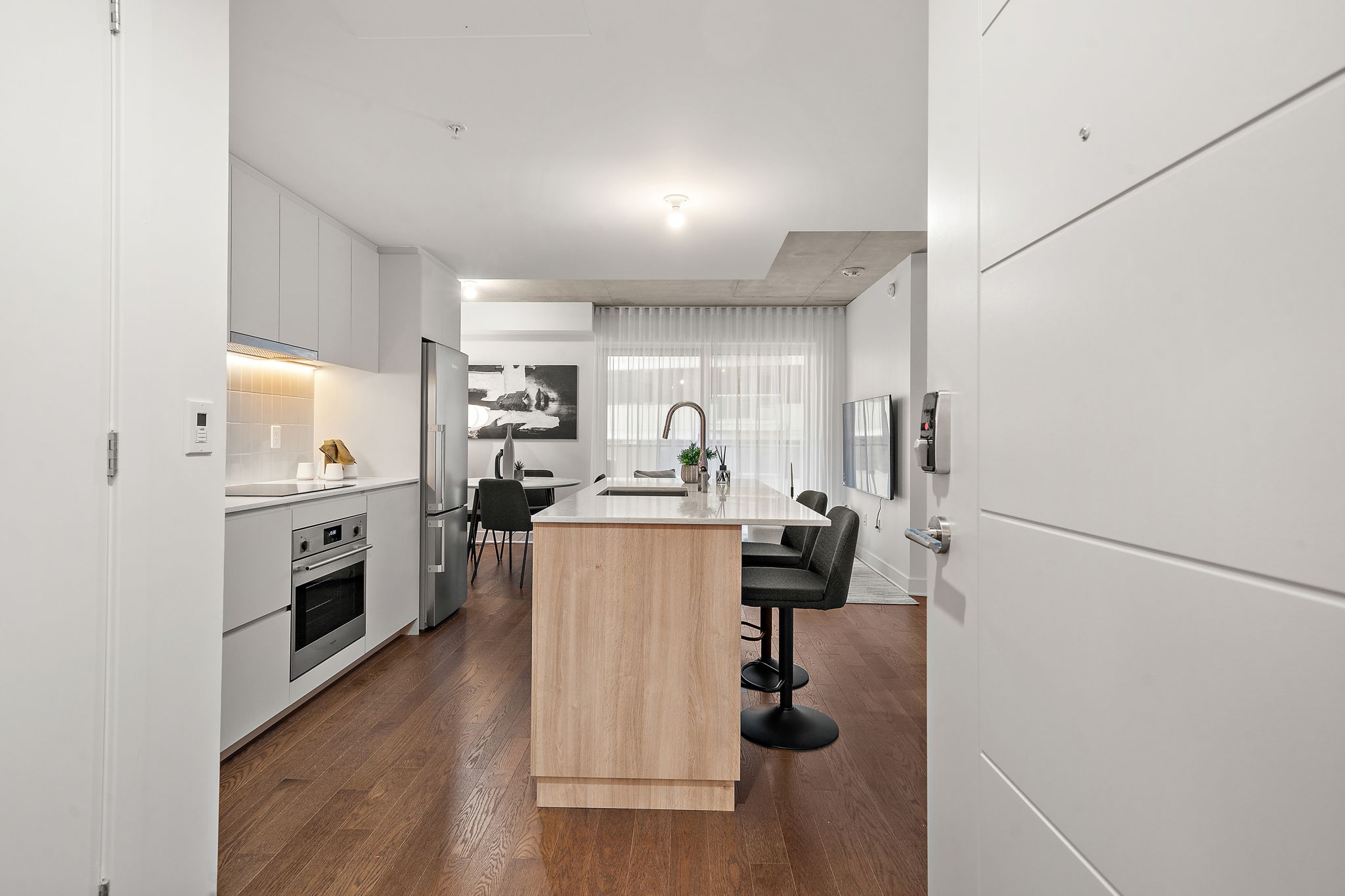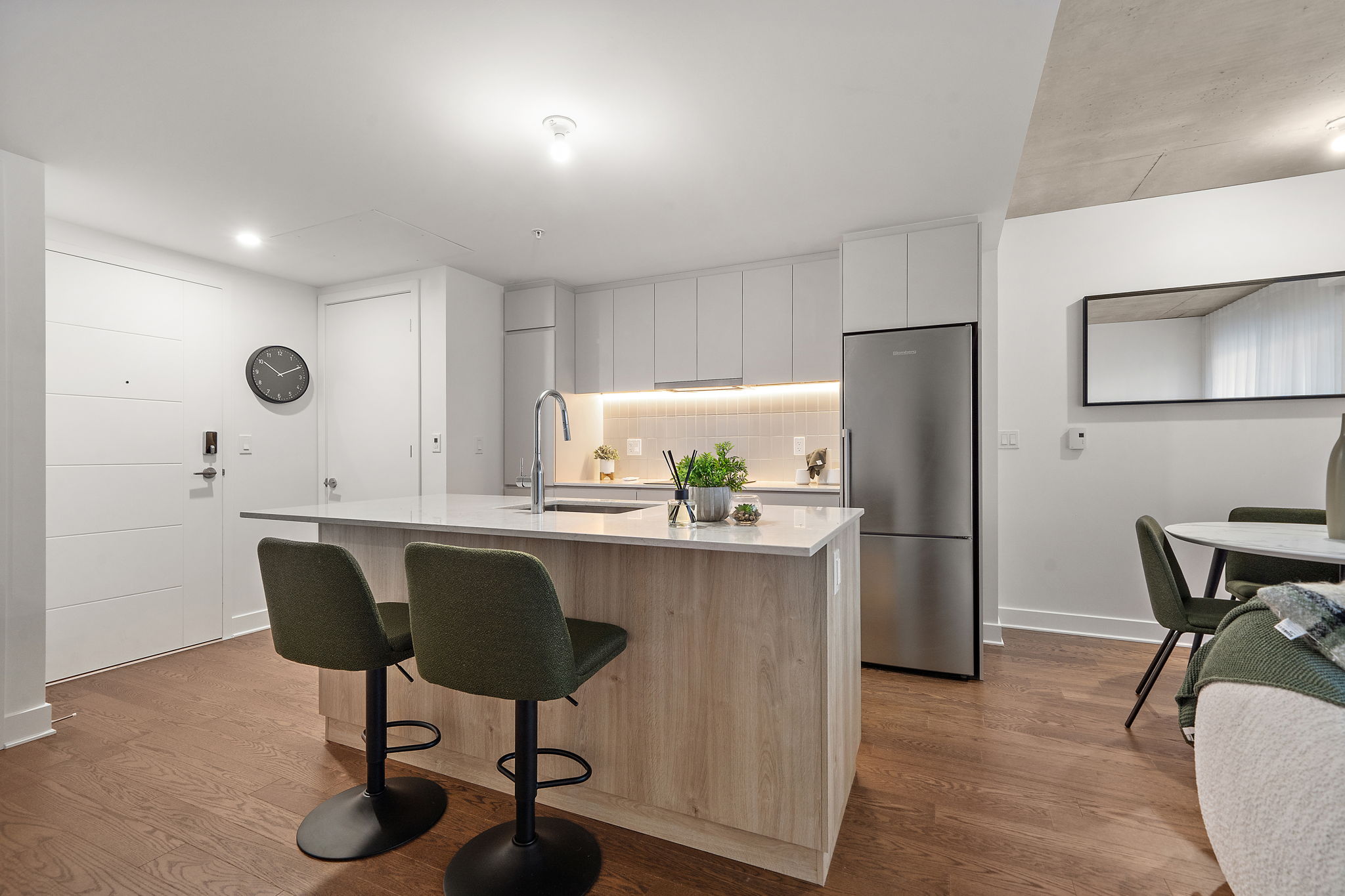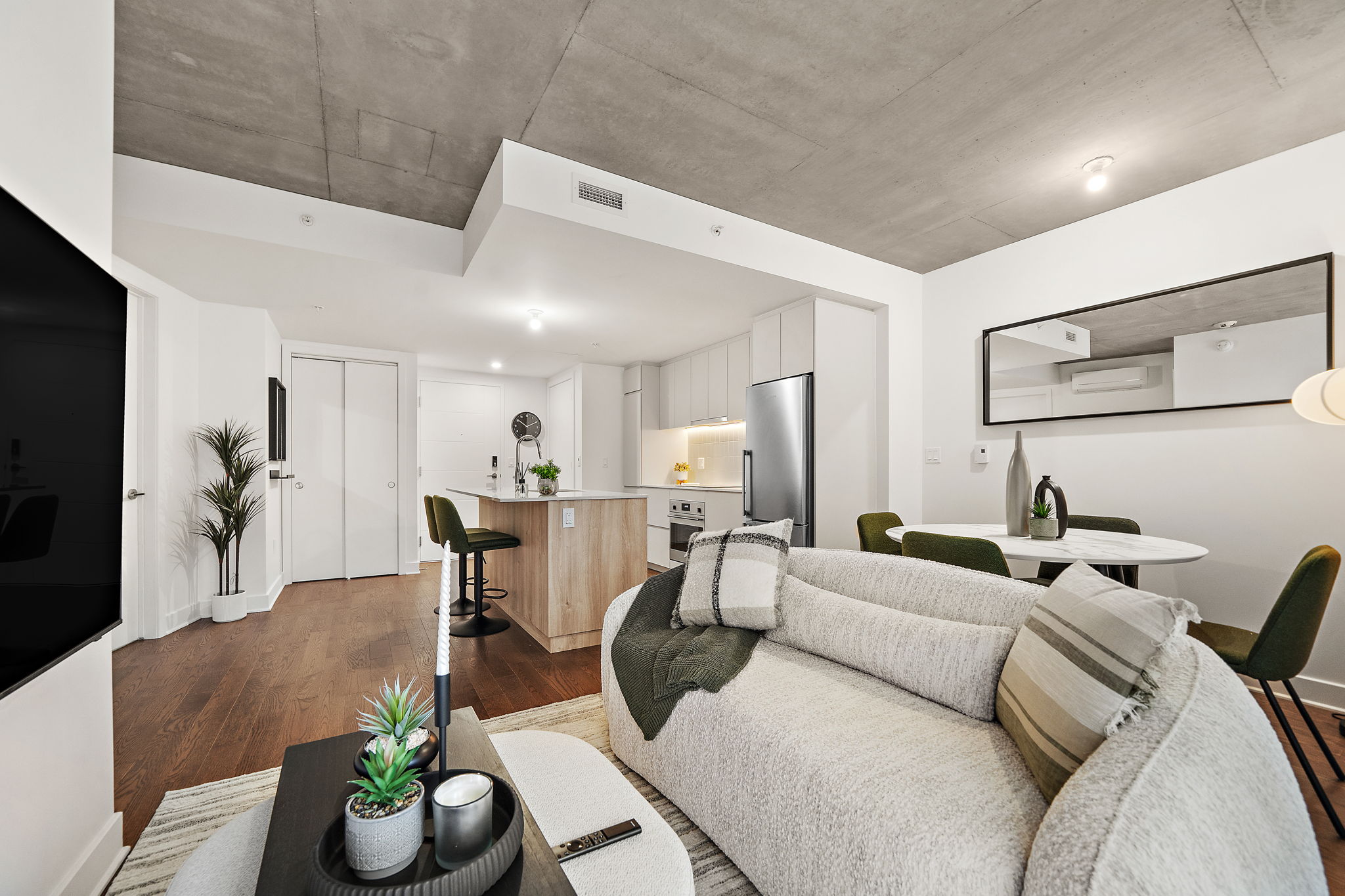 Commodités de l’immeuble : Terrasse sur le toit offrant une vue imprenable sur le centre-ville de Montréal. Vous pourrez profiter d’installations exceptionnelles telles que des piscines communes, une salle de sport entièrement équipée, un spa avec hammam, et des terrasses sur le toit avec vue panoramique. Des espaces luxueux incluent une terrasse au rez-de-chaussée, un gym, un coin salon avec BBQ sur le toit, une piscine extérieure, un chalet urbain, ainsi qu’une suite privée avec cuisine complète. Idéalement situé, à quelques pas des services, des transports en commun, des parcs, des écoles, du Vieux-Port, du centre-ville, des autoroutes, du REM, et du marché Atwater. À voir absolument! |